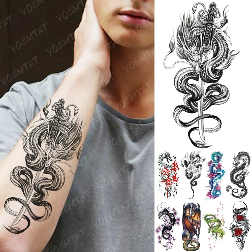 Waterproof Temporary Tattoo Sticker Dragon Sword Snake Flash Tattoos Owl Wolf Ebay